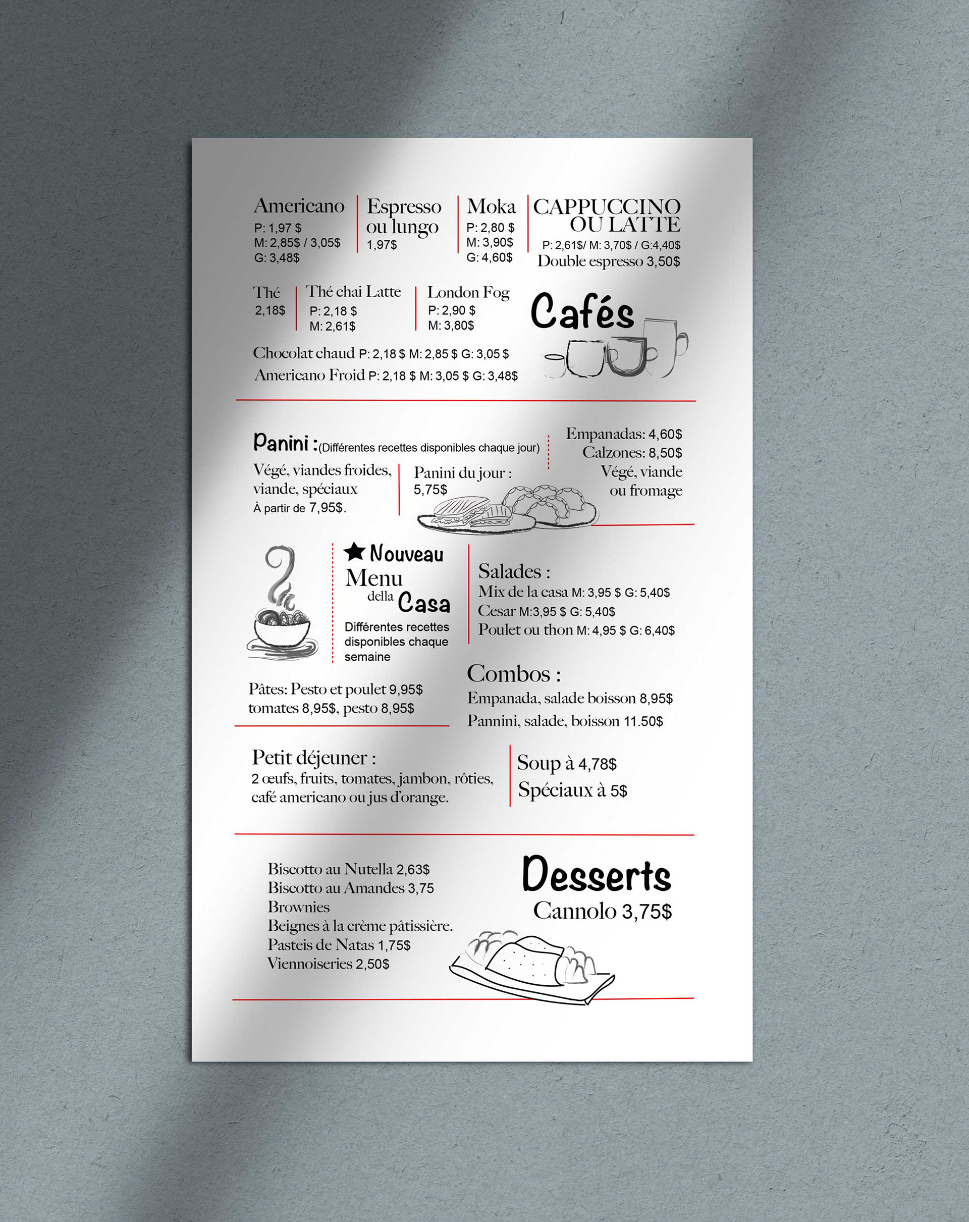 Visual identity for a small independent café, designed with a light and handcrafted aesthetic inspired by the texture of its signature dessert, the cannoli. An illustrated menu and graphic pieces were created to reflect the warm and welcoming character of the space.